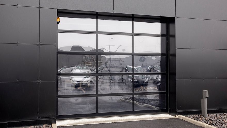 Maxivision sectional door: easthetic industrial closure with maximum visibility.