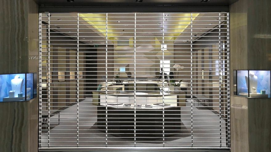 The steel rolling grille enhances storefront visibility through transparency while ensuring its protection.