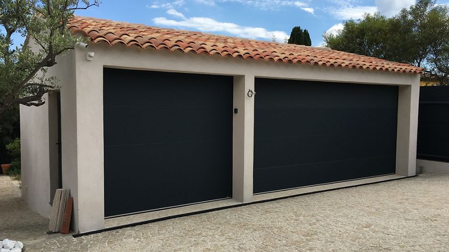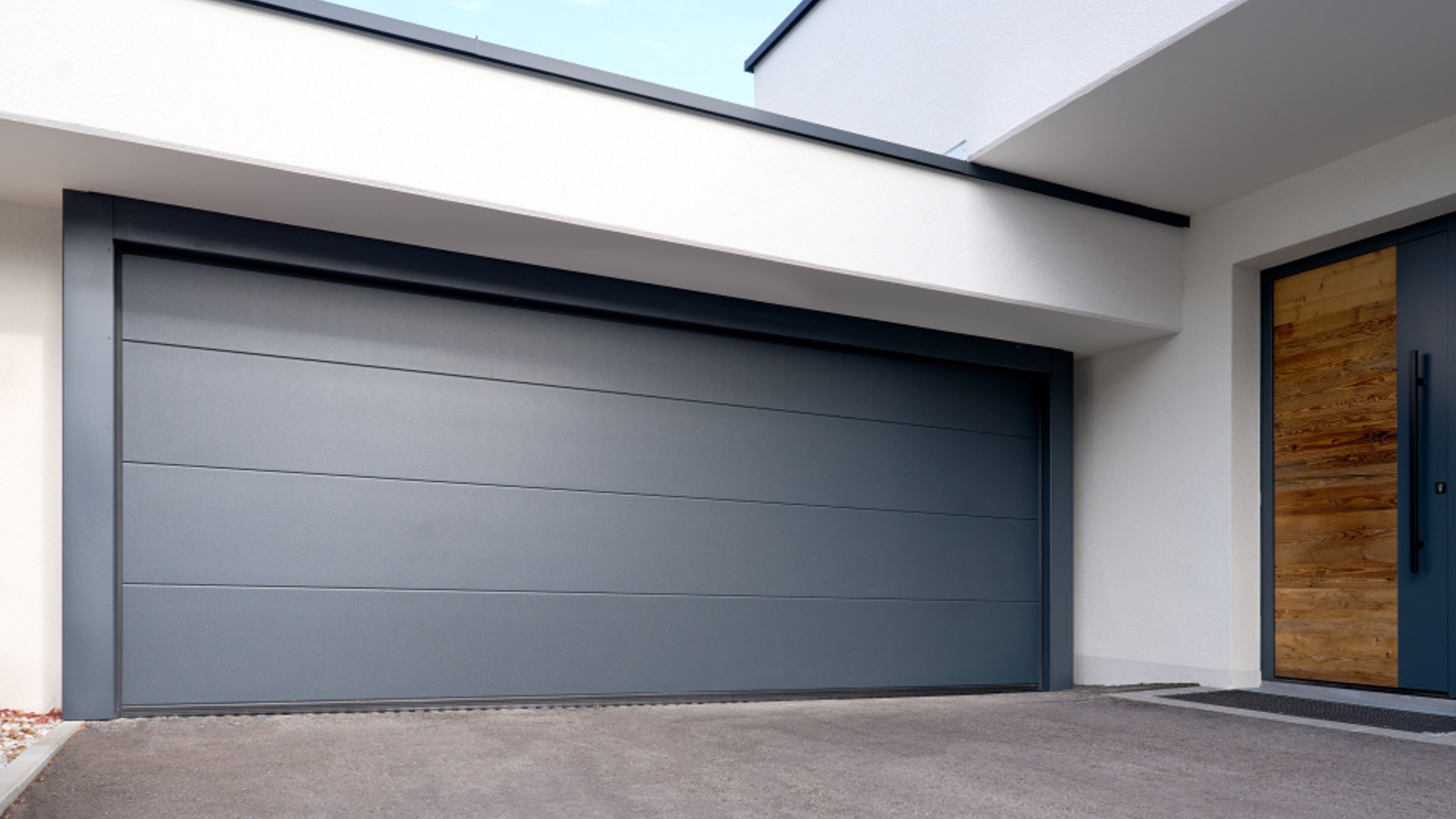 Porte de garage avec ressorts aux montants horizontaux. Solution de fermeture alliant sécurité, esthétisme et confort d'utilisation.